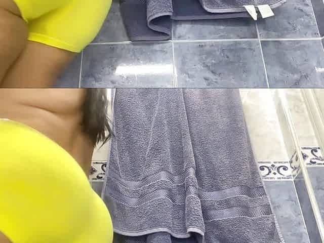 "AMATEUR CAMERA IN MY STEPMOM'S BATHROOM WITH TIGHT LYCRA CAMELTOE"