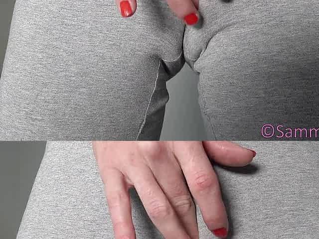 Dry humping camel toe grinding in shiny spandex leggings, cum in pants rubbing cameltoe