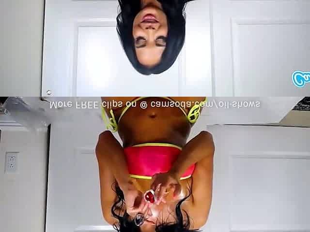 Petite Camgirl Sucks Huge Long Dildo Cock And Swallows It Jerking Off With Both Hands Ass Shaking