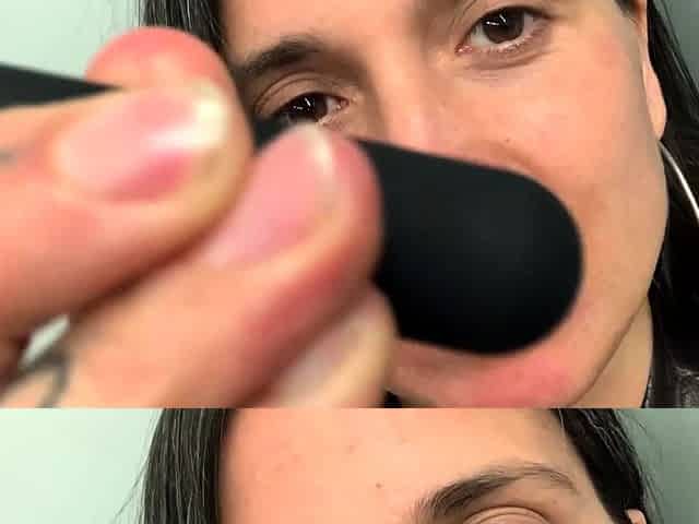 Fake tittied brunette camgirl plays with a vibrator and dildo