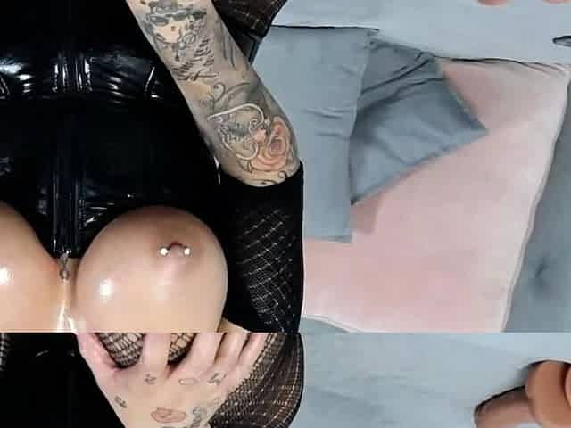 Asian camgirl Taeni lara undresses then oils her tits in closeup