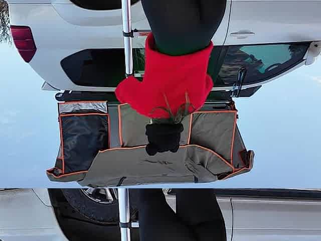 Mountain hotty shows off rooftop tent set up and light up anal intercourse