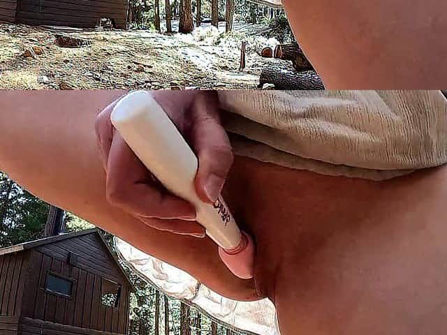 Risky vagina play and creamy cum in the camp near the precipice! Can u stand the vigour of storm?