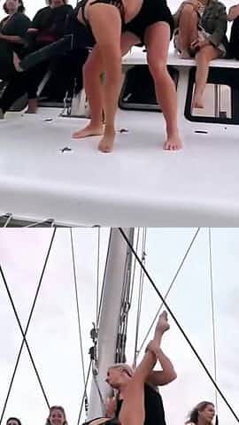 Nina Dobrev dancing with a blonde friend on a boat