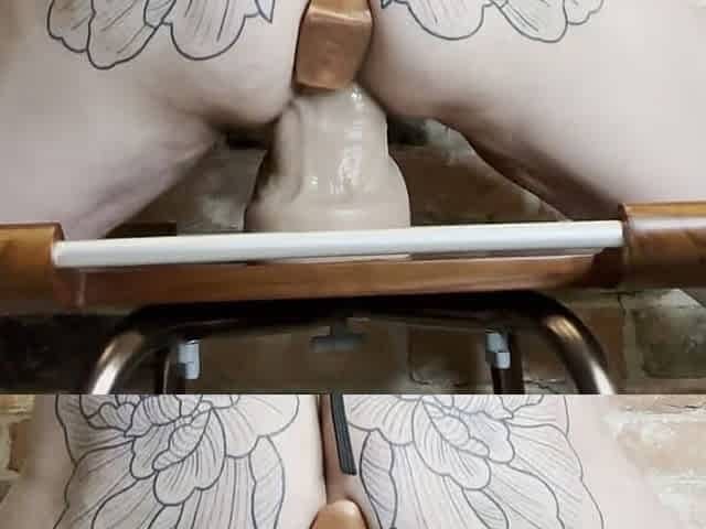 Riding Huge Dildo with Plug Stuffed in Loose Piggy Ass