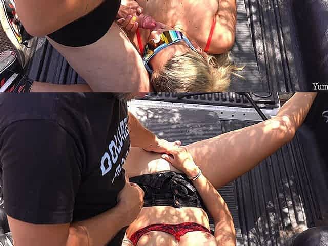 Backwoods blonde with nice tits gets fucked on side of road by black guy
