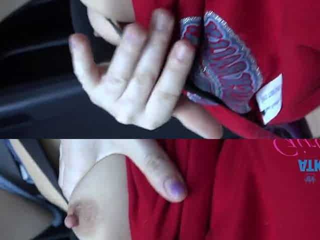Breasty amateur chick is having casual sex in the car, in the midst of the day