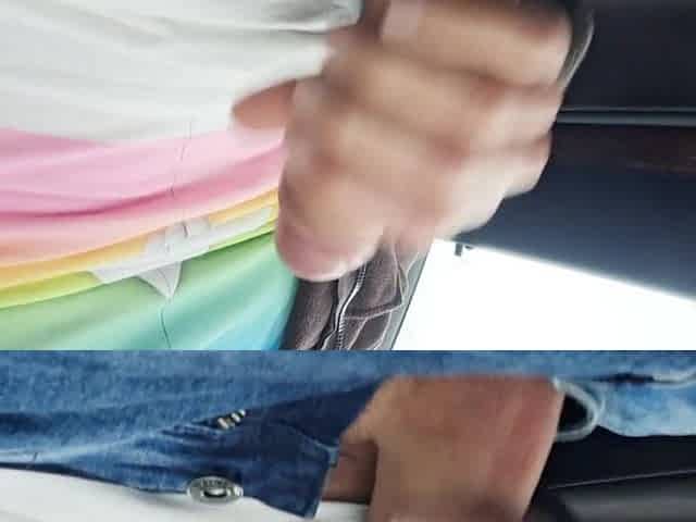 Hawt Chap masturbating his large schlong in a Car - Risky public place