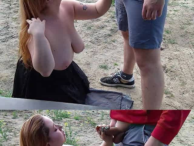 Amateur milf car outdoor handjob