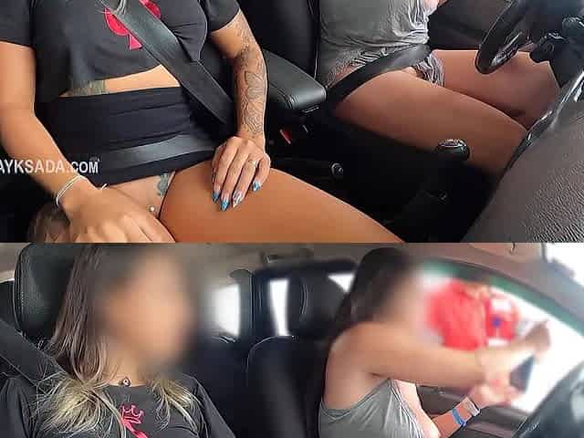Skinny Honeys Foxxxies & Kari Lesbo Bang On The Backseat - VIP SEX VAULT
