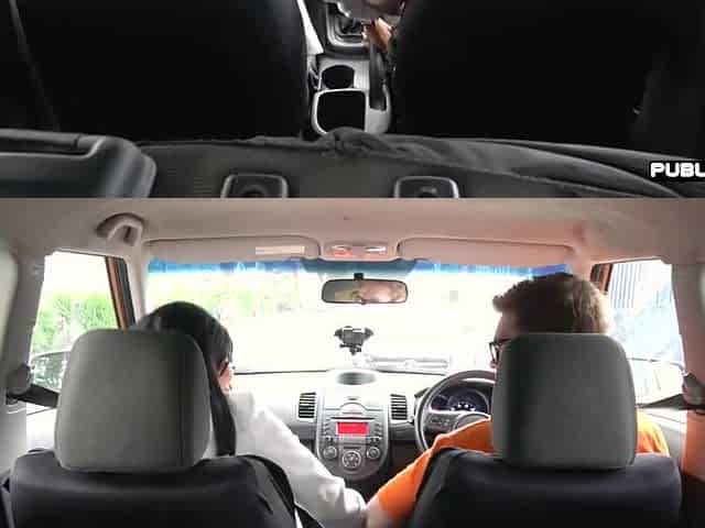 Hot Babe Bounces Her Big Booty On Her Boyfriends Cock While Stranger Drives The Car