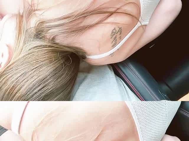 Fun with Zoey Jpeg as she gets cozy in the car and shows off her furry pussy