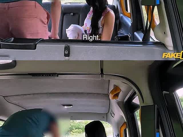 Sex on the backseat with a big-boobed slutty blonde and a fake driver