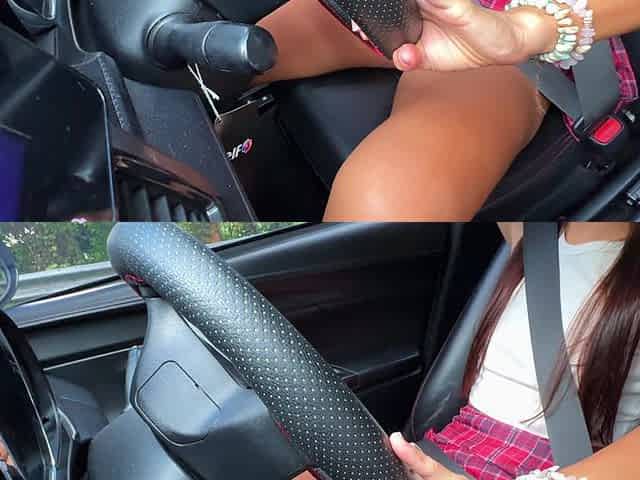 See Her Enjoy Those Cocks In A Driving Car