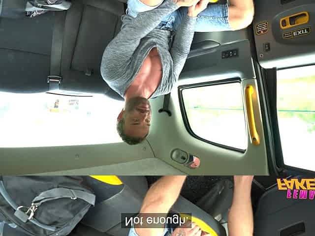 Sex on the backseat with a big-boobed slutty blonde and a fake driver