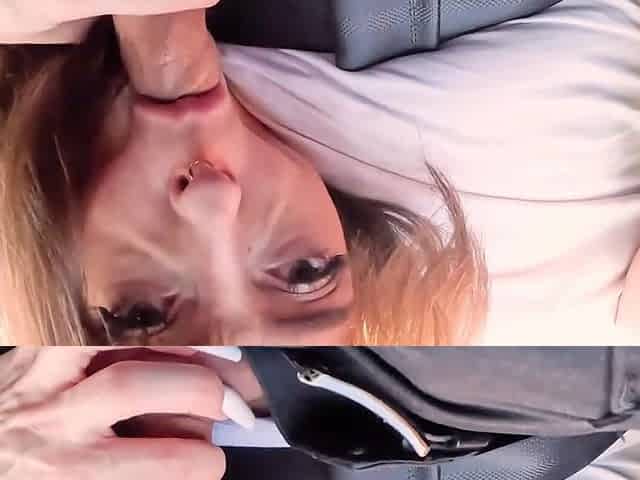 Blonde bombshell Alicia Amira gives blowjob in a car