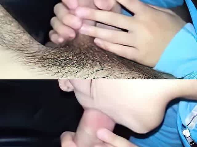 brunette-Sucking And Jacking Cock In Boyfriend's Car