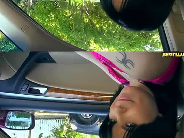 Busty driving babe gets pussy licked by Be4, cock riding tutor in car