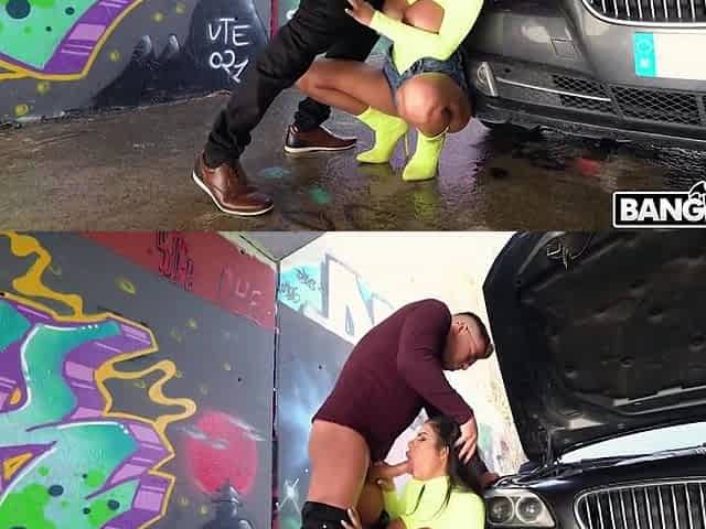 Car Wash Babe Gets Her Cunt Drilled By Her Customer