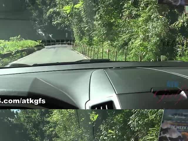 Driving amateur babe fucked by instructor outdoor in car