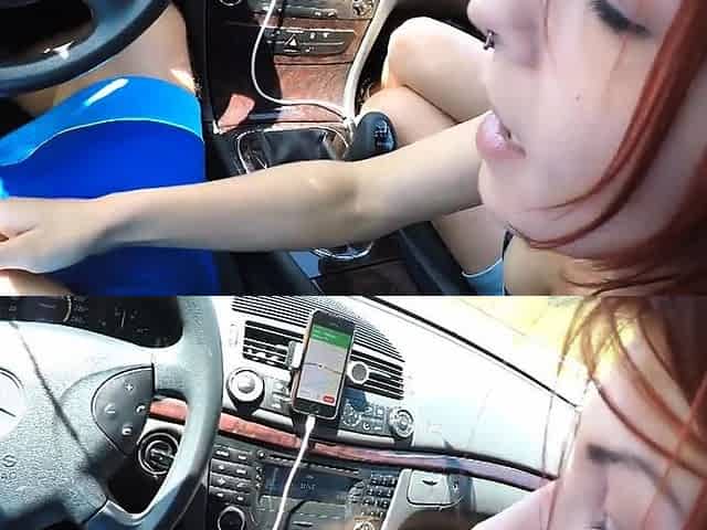 Car ride with blowjob from redhead teen