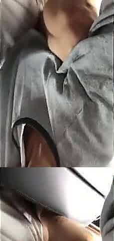 Seductive woman pleasures herself in car at parking lot, teasing and tempting while removing her panties