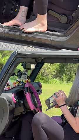 Pedal Pumping Size 16 Feet in Jeep Heels & Barefoot
