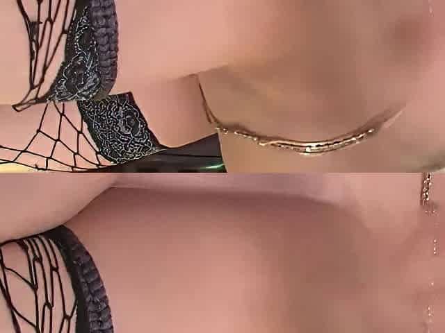 Slutty brunette in black mesh stockings gets her ass and pussy fingered on a jeep