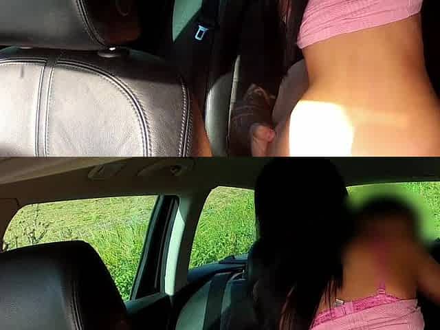 Naughty sexy girl with glasses gives public blowjob in the car and gets rewarded with a mouthful of cum!