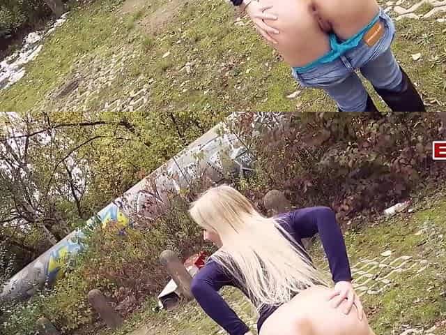 German Blonde skinny street hooker Pickup in Car for Outdoor Fuck