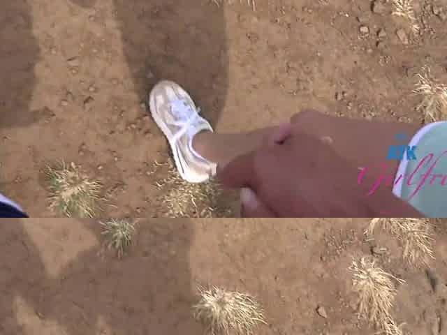 Solo Masturbating Nympho Babe Fingers Pussy On Car Hood