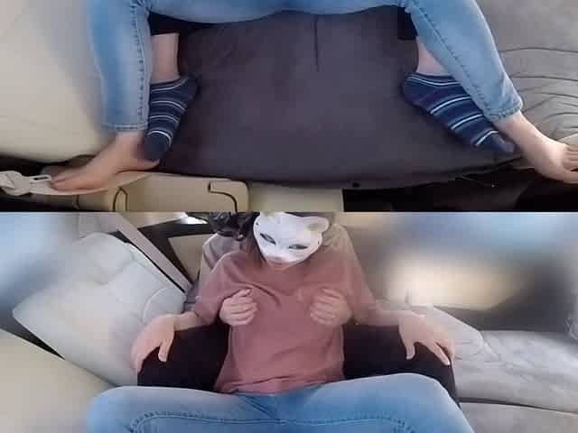A lady masturbates in a car in a parking