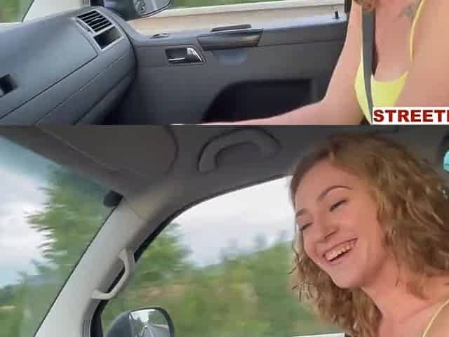 Reality babe picked up for sex in the van with a big cock guy