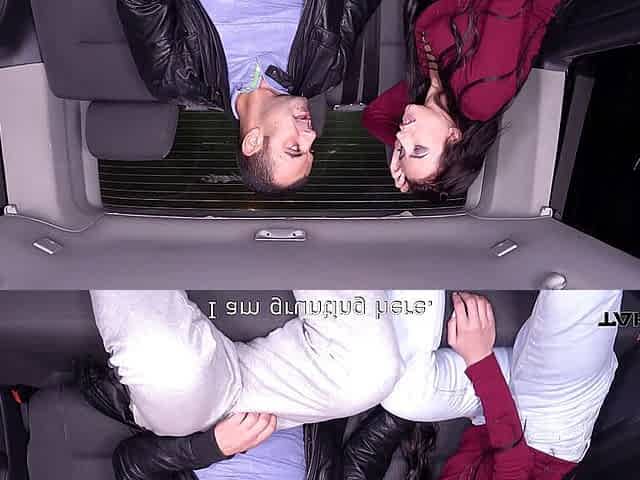 Two lesbians eat pussy in taxi then fuck outside it using strap on - NO AUDIO