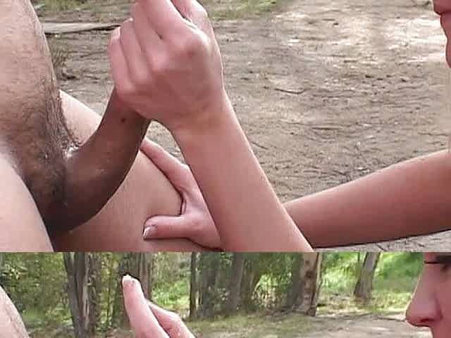 Blowjob in the car then sucking two cocks fucking outdoor - many scenes in video