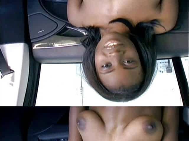 Ebony girlfriend gives her boyfriend a tit job and rides his dick in the car