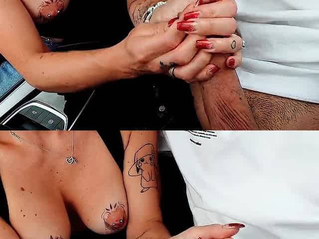 The Car On A Rest Area, I Jerk Him Off With My Breasts, Empty His Balls, He Uses Me Like And Squirts In My Mouth