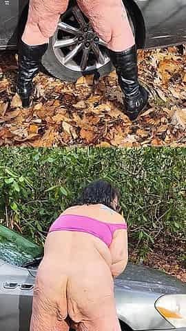 Outside Sex on the Car Flex Whore Flex Those Legs I'm Gonna Cumspread