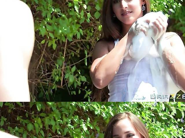 Lovely brunette hottie Vanessa Leon gets dirty after washing a car