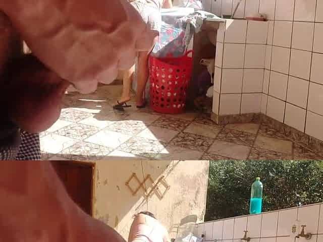 I caught my stepdaughter washing clothing in shorts, I got excited and liked her super sexy snatch