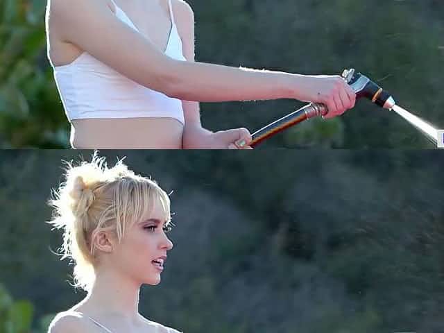 Kinky Brunette Talia Shepard Outdoor Striptease Car Wash