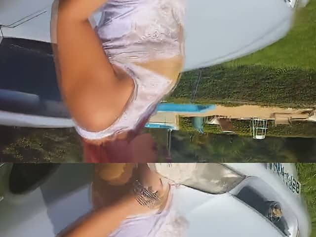 Hot car washing babe in bikini stripping and getting wet