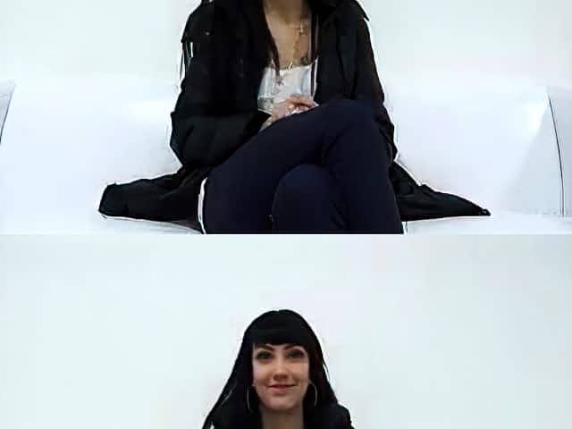 Dark-haired cutie gets naked during casting and sucks a hard rod