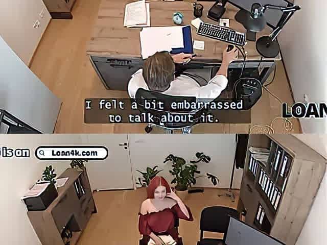 Loan4k. splendid redhead is well-prepped to show her Big Tits and give her snatch for a loan