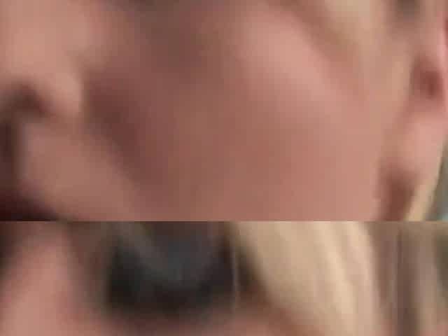Ice blond hair lady teenager in pink pantyhose blows cock