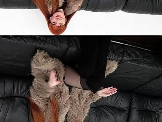 Beautiful long-haired woman gets a black cock in her mouth and vagina