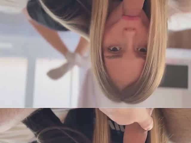 Slim Coed Sabrina Rubs Her Vagina And Gives A BJ To A Dong!