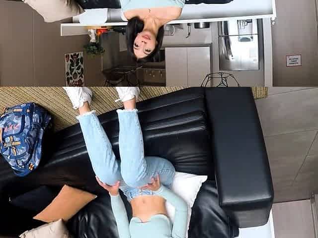 Casting Daybed : slim Sarah taking all the meat in her Moist vagina