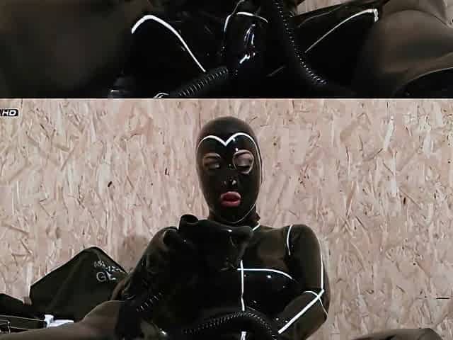 Amazing hot milf masturbation in black latex catsuit with sex massager solo 4K