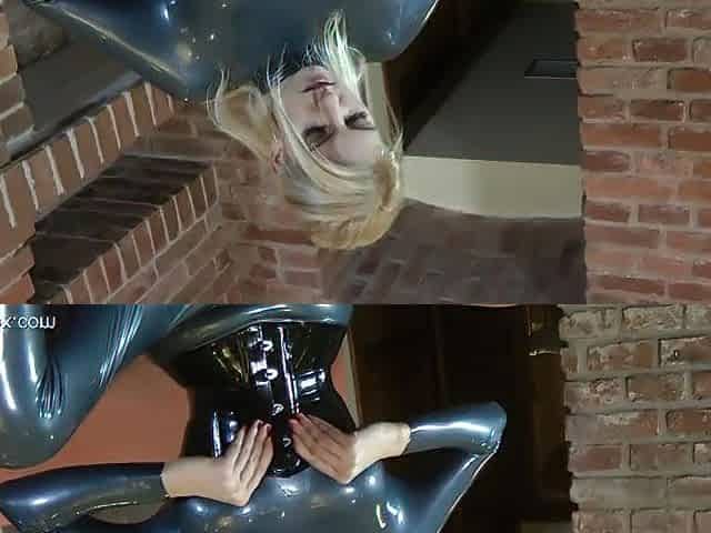 Blond Whore In Ebony Latex Spandex Catsuit Screwed